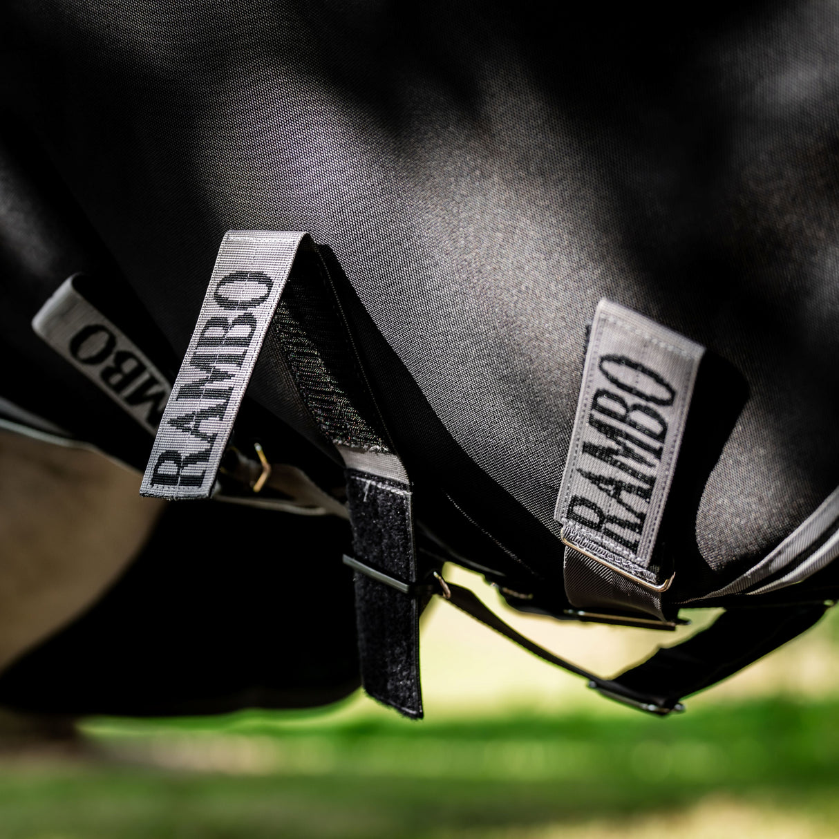 The Rambo 1680D Turnout offers additonal protection in the form of three crossed removable surcingle straps incorporating the Rambo® Safety Surcingle System. This system is created using a unique combination of Velcro and a plastic loop. The system can withstand 100kg of pressure, but the plastic clip will break in an emergency, giving extra protection for your horse and horse owners peace of mind.