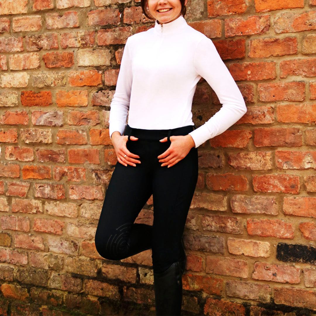 La ceinture extensible a été magnifiquement conçue pour offrir un confort incroyable, tandis que la doublure en polaire brossée luxueusement douce vous offre une chaleur incroyable pour vous aider, vous et votre cheval, à vous entraîner toute l'année.