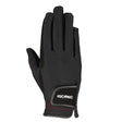 These smart gloves are made from a four-way stretch back for a flexible fit, with a synthetic suede palm and a reinforced forefinger and thumb for a sure grip on the reins. The touch tape cuffs feature a silicone HyCONIC logo and ensure a snug and secure fit. Finished with red detailed stitching for a smart look.