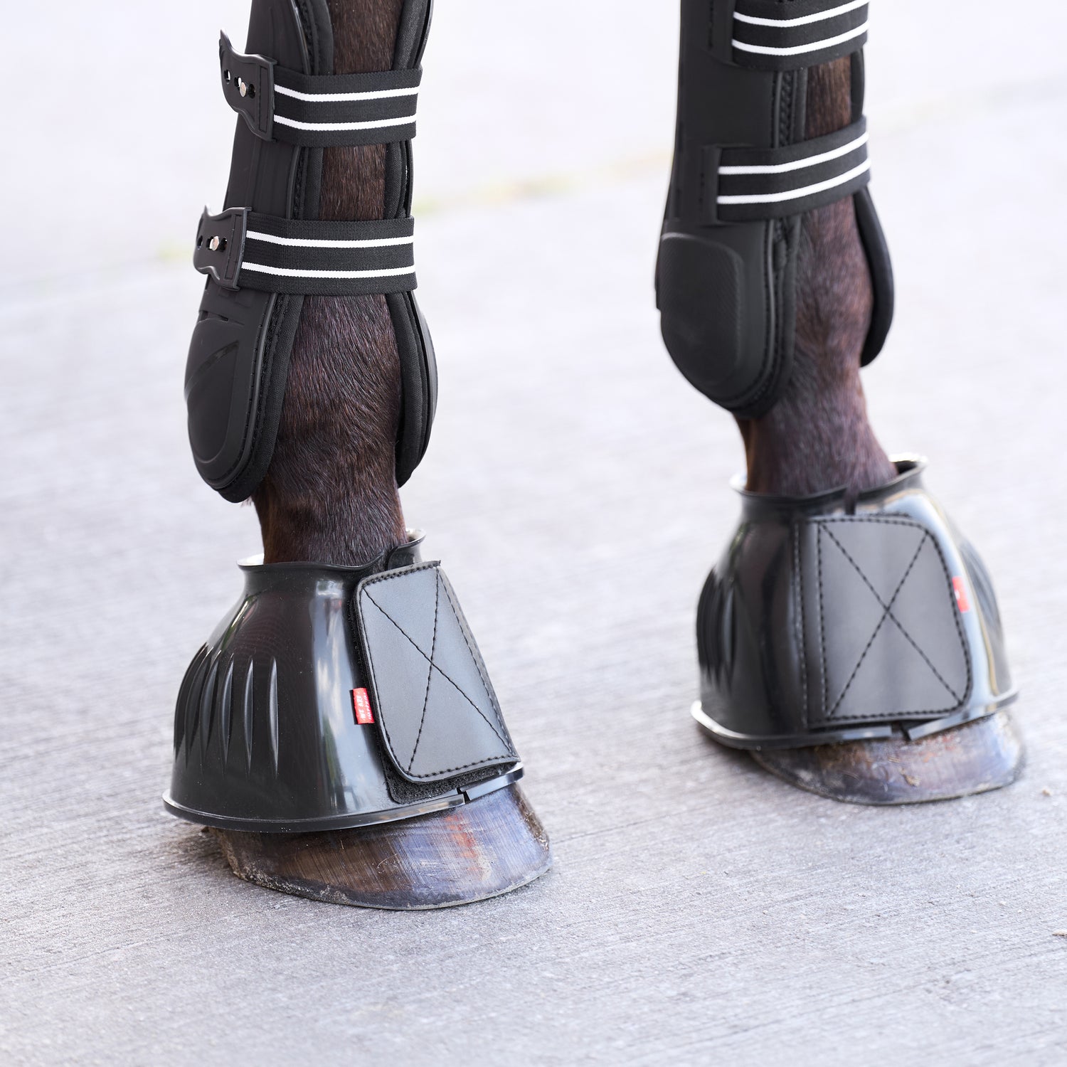 These overreach boots provide a protective layer between the back and front hooves. Also great for protection while jumping in the pasture. The PVC material is easy to clean. The closure consists of one piece covered in PU for extra strength.