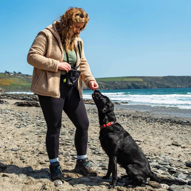 Make dog walks more convenient with the Dog Snack Pack. Designed for both you and your dog’s essentials, it features a spacious main compartment for treats, a phone pocket for easy access and a front pocket for extra storage. The poo bag pocket and built-in poo bag dispenser ensure you're always prepared. With an adjustable strap and belt loop, you can wear it however feels comfortable for you. Made from water-resistant fabric and featuring waterproof zips, this pouch keeps everything dry and secure, no matter the weather.