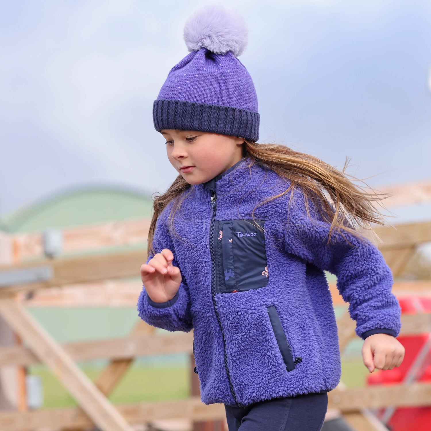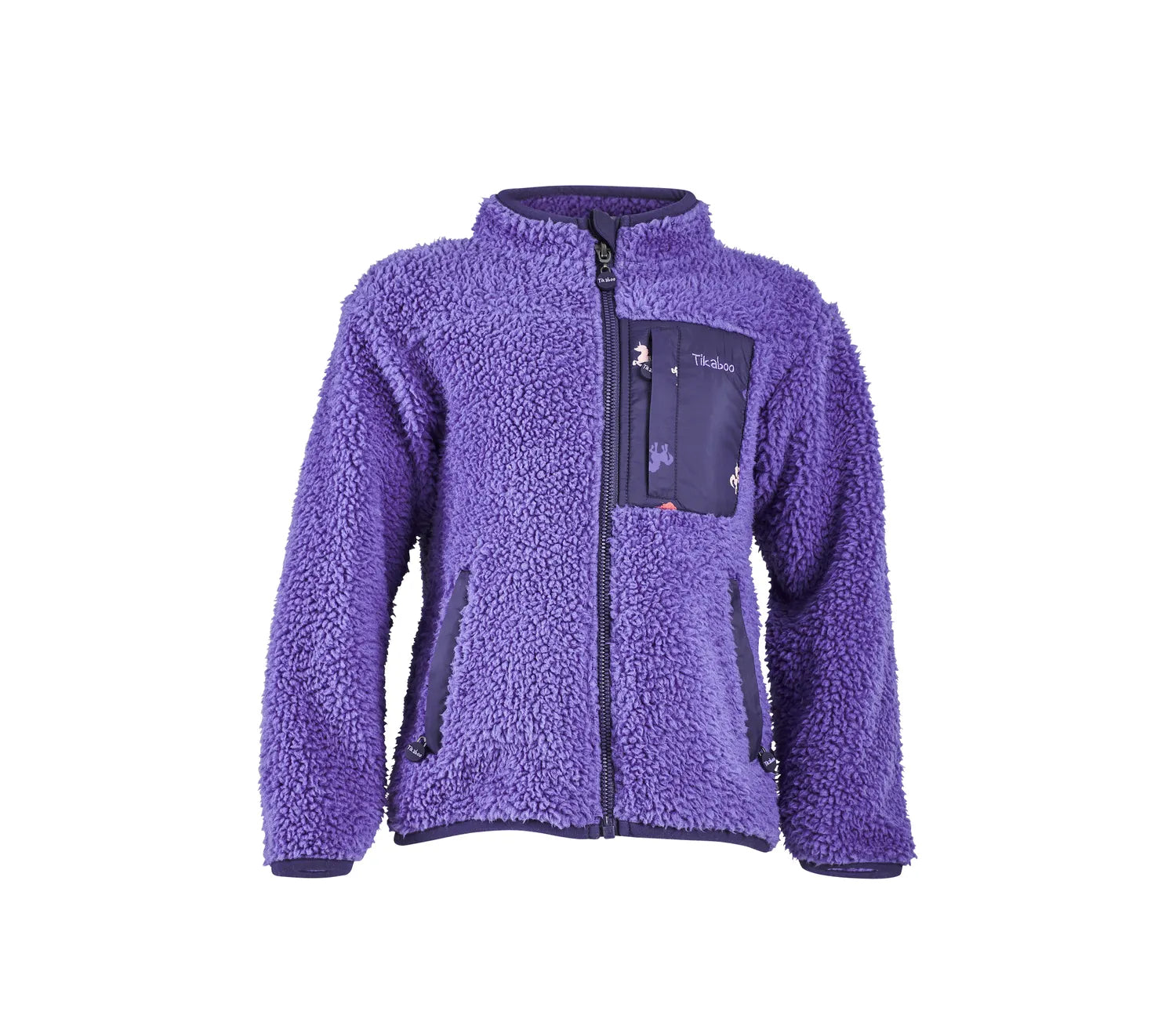 Pony riders will love to cosy up in the Tikaboo Fleece jacket. A relaxed fit with stretch trims to the cuffs and hems for unrestricted comfort. Three outer zip pockets offer plenty of space for safe storage of toys or treats. Warm borg fleece features a soft feel inner for extra snugness. Details include highline collar, chin zip guard, easy grip zip pulls, inner neck tape, fun prints, Tikaboo embroidery.