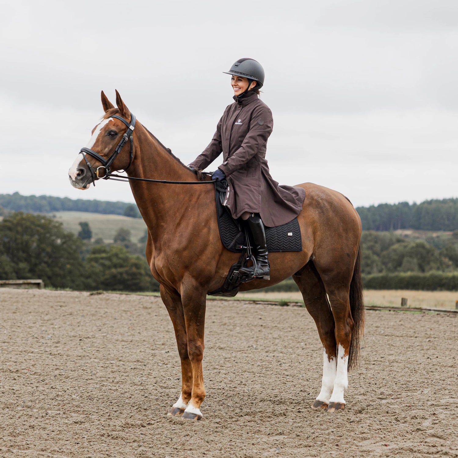 Part of the EQUIDRY fitted range, the Bronte is the perfect blend of elegance, performance, and practicality. Designed to keep you warm, dry, and stylish, this long, tailored coat sits beautifully over the saddle, offering full coverage and protection from the elements.