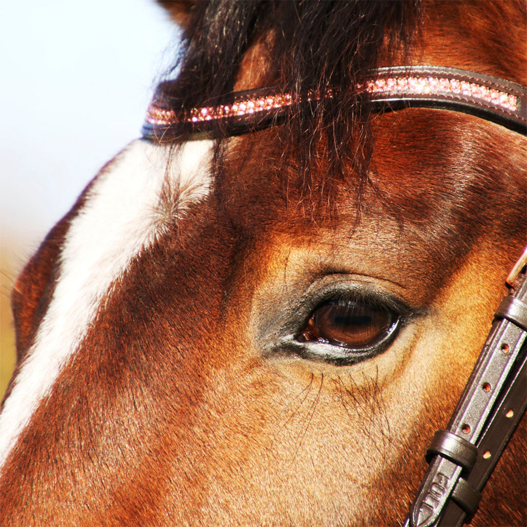 The Hy Equestrian Rosciano Rose Gold Detailing Brow Band is the perfect way to add a bit of bling to your bridle.