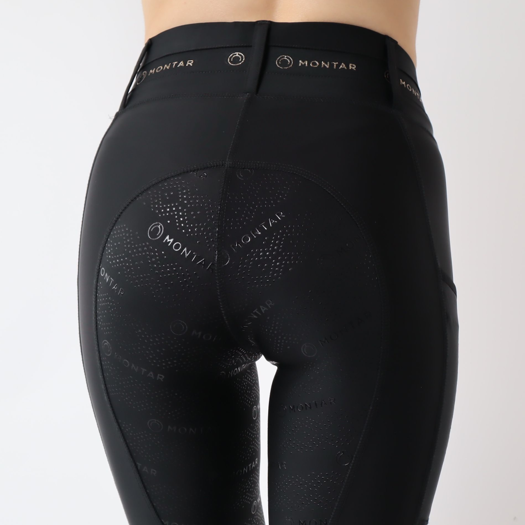 Montar Shelby Ladies Logo Tape Gold Pull on Full Grip Riding Tights