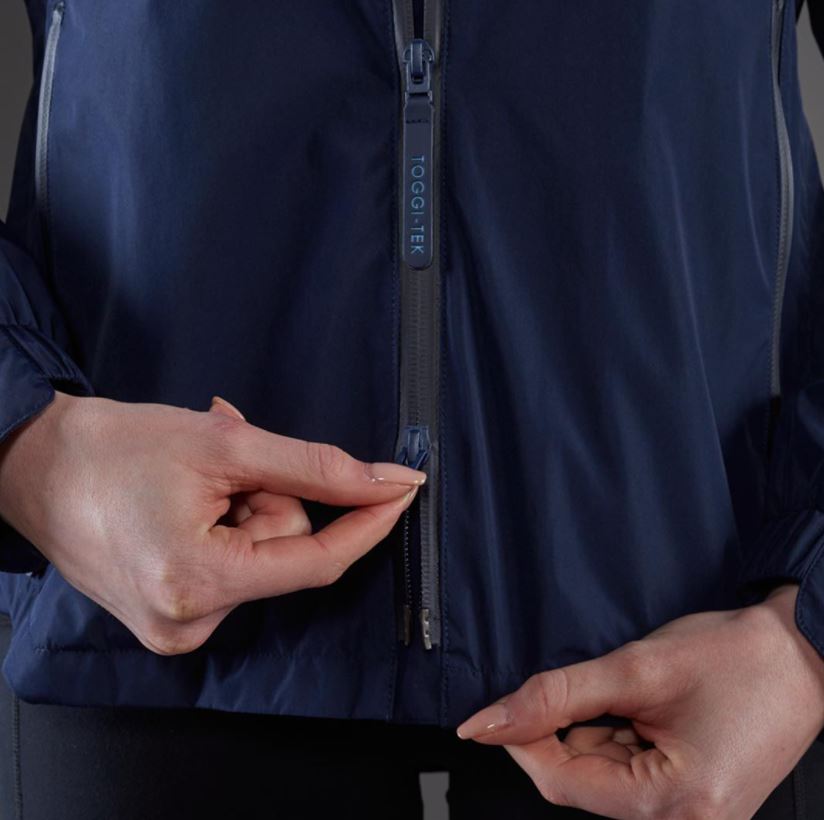 The Defender jacket is the ultimate waterproof shell which has achieved superior waterproof results from the test lab. The Defender jacket will keep you dry in the heaviest of downpours with it being waterproof and breathability, whilst also having taped seams, superior DWR and waterproof zips. The refined detailing of this jacket, such as the secret reflective branding, side split hemline and pack away ergonomic hood, elevates the piece into a contemporary yet practical wardrobe essential for all equestrians.