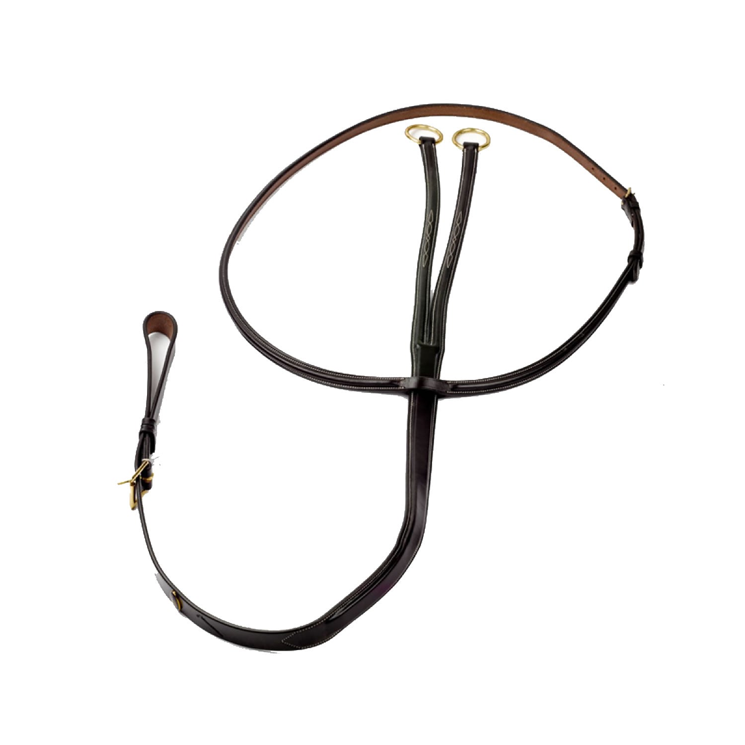 Designed to match the Valencia collection perfectly, this high quality martingale is made from a supple luxury leather and features a contrast cream stitch with decorative design. Features brass hardware.